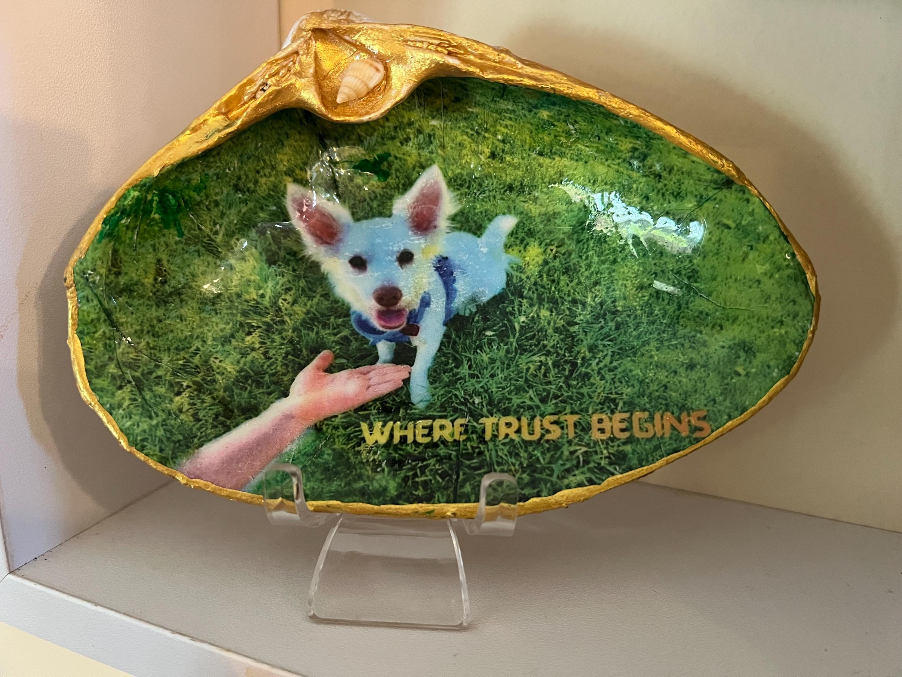 Transfer a treasured photo into a shell to give it a more permanent place than a frame! Make a series of family portraits for your living room or commemorate a beloved pet. Or why not give one as a gift to a friend? They’ll be touched by your thoughtful keepsake. Vacation Shells, Birthday Shells for Her, Valentine's Day Shell. Preserve a memory in the stillness of time by transferring it onto a photo-encased shell. Capture your favorite pet pose or perhaps a celebration of any kind and display it for all to see. Shells are sterilized, painted, and sorted by size. Your photo is enhanced and edited for the best presentation. A laser printer is used to print your photo, and a special photo-transfer medium is precisely applied to the shell and your photo. After the photo is delicately placed into the shell, it will dry for 1 to 2 days before the paper is removed. Your photo is now embedded into the shell. This is NOT decoupage. Your photo is then decorated and enhanced to your liking and embellished with sparkling Cape May sand. Your carefully packaged shell will arrive in 1 to 2 weeks.