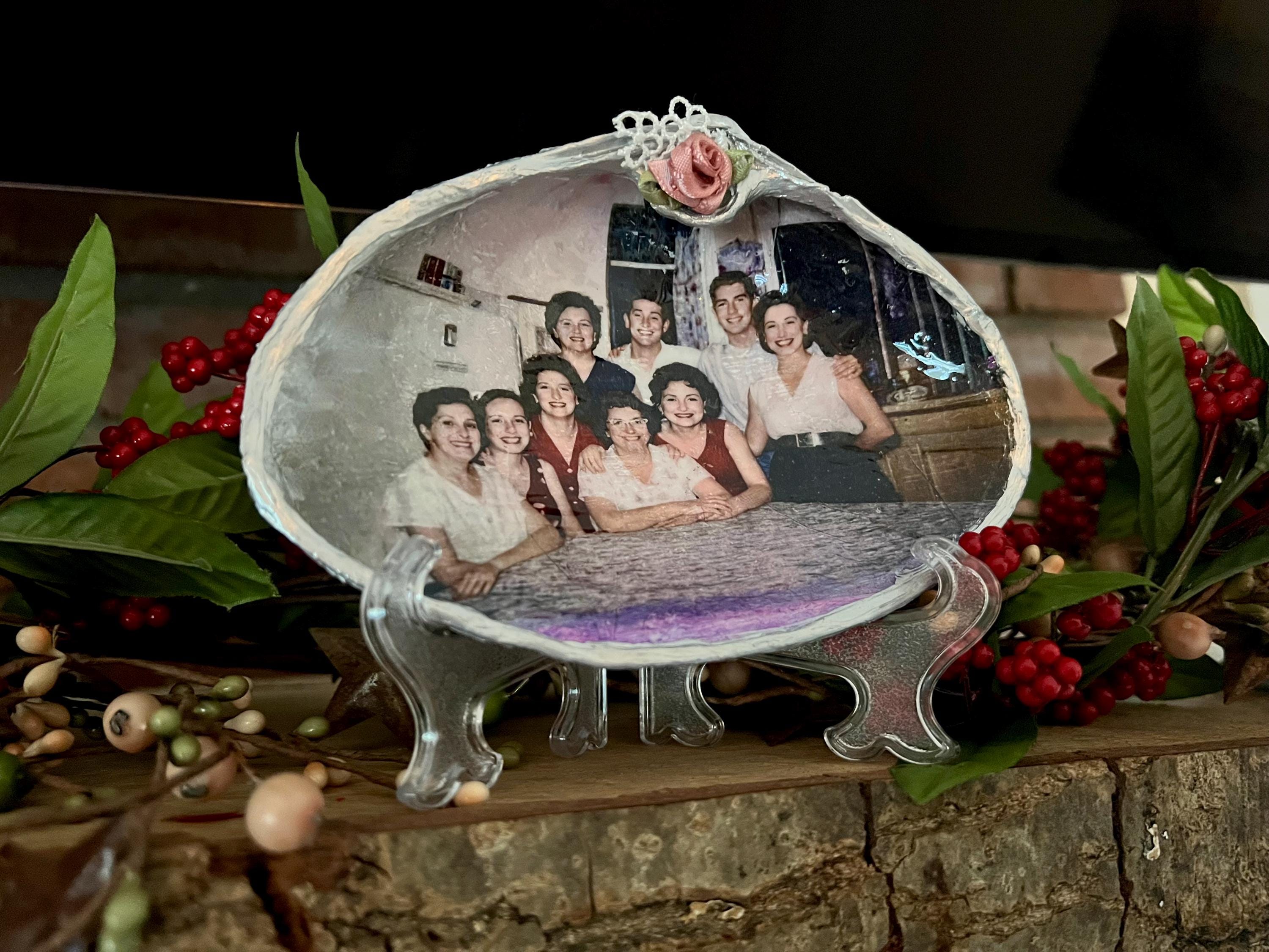 Handmade Vintage Photo Seashell – Enhanced & Preserved Family Memory, Coastal Home Décor, Personalized family heirloom, Unique Keepsake