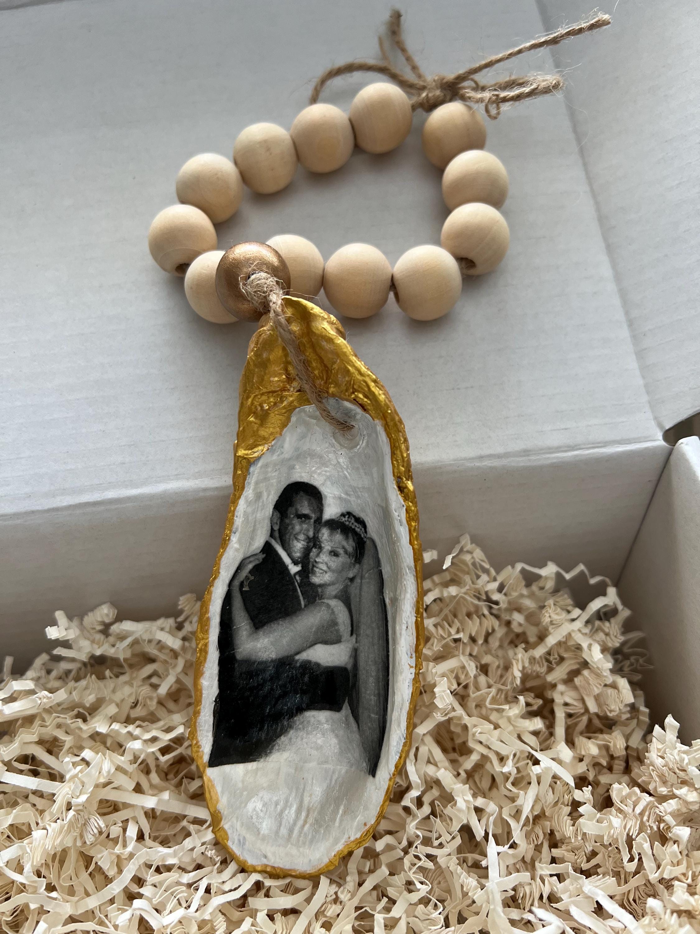 Capture your love story in a way no frame can — your photo is permanently transferred (not decoupaged!) onto a natural Cape May seashell, creating a one-of-a-kind wedding keepsake that feels as timeless as the ocean itself. Each shell is locally sourced, hand-crafted with care, and finished with touches like Cape May sand, lace, or pearls for coastal elegance.
