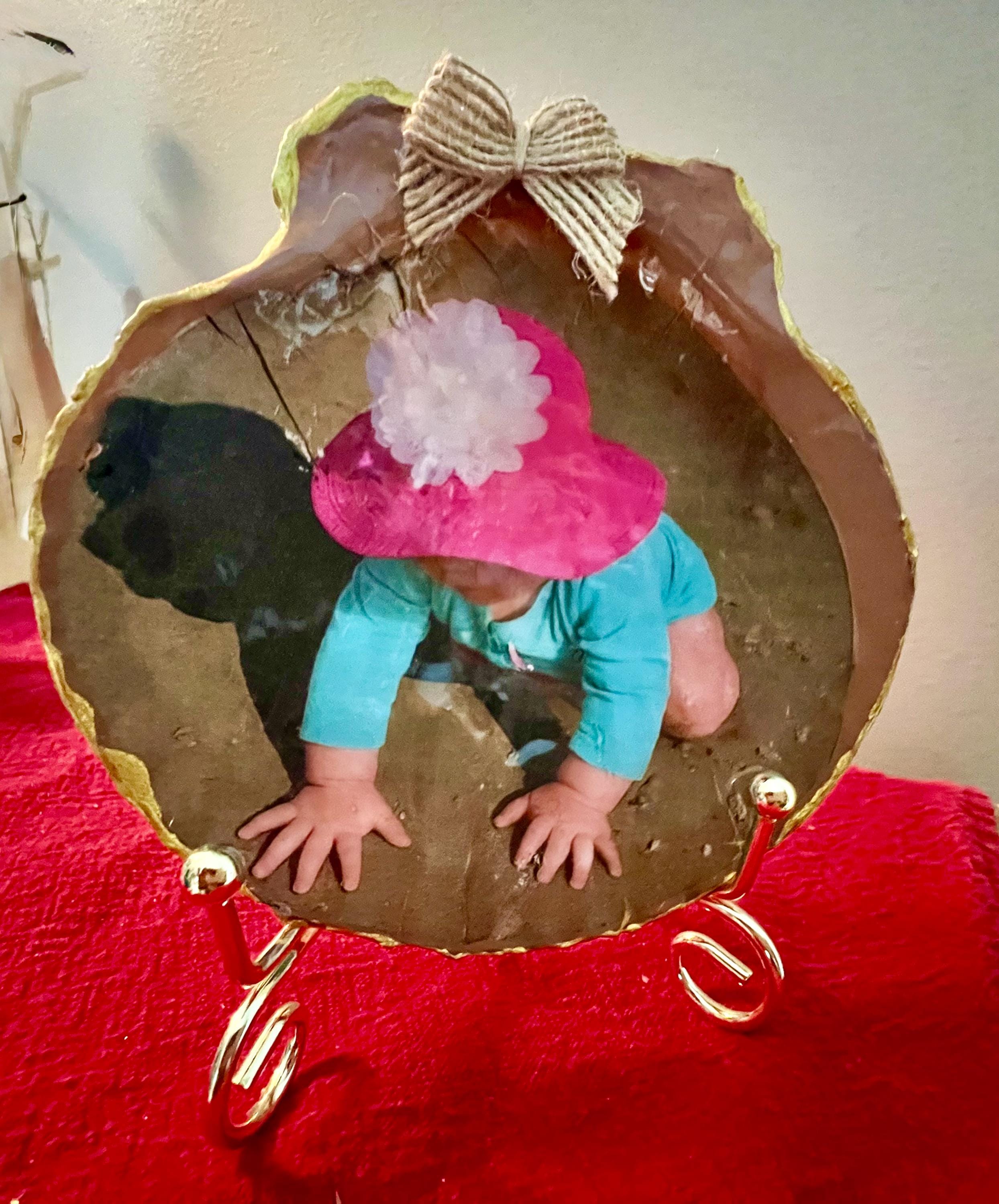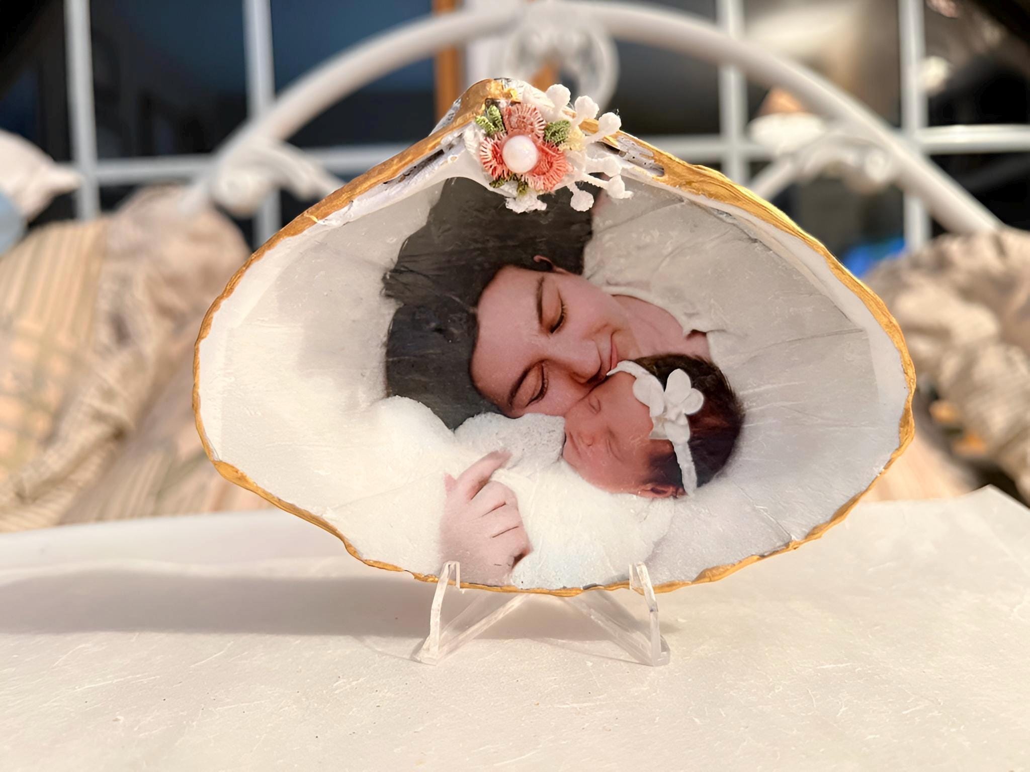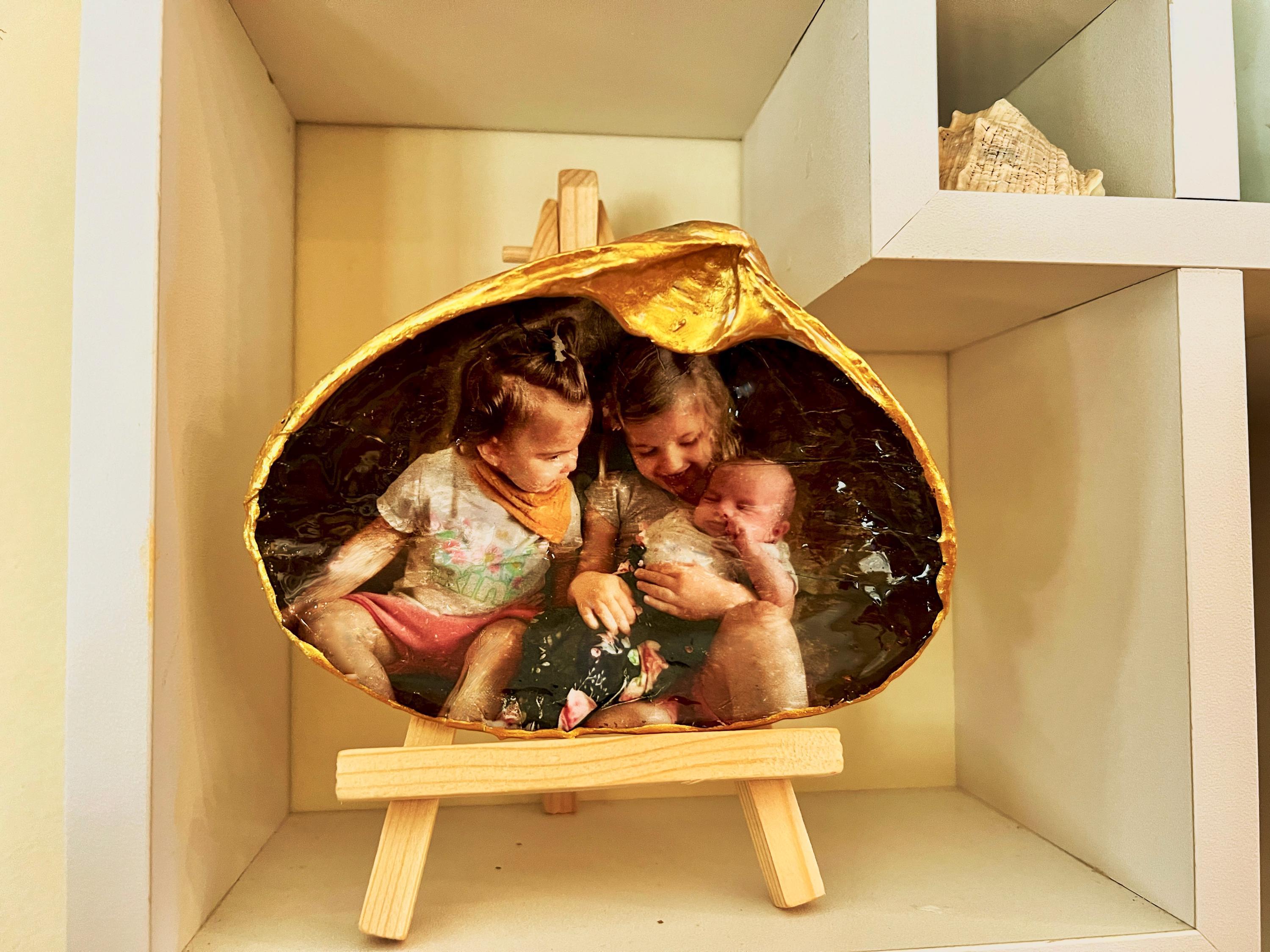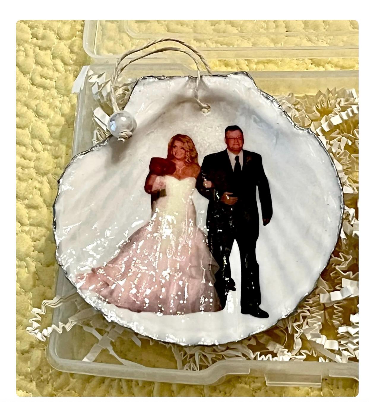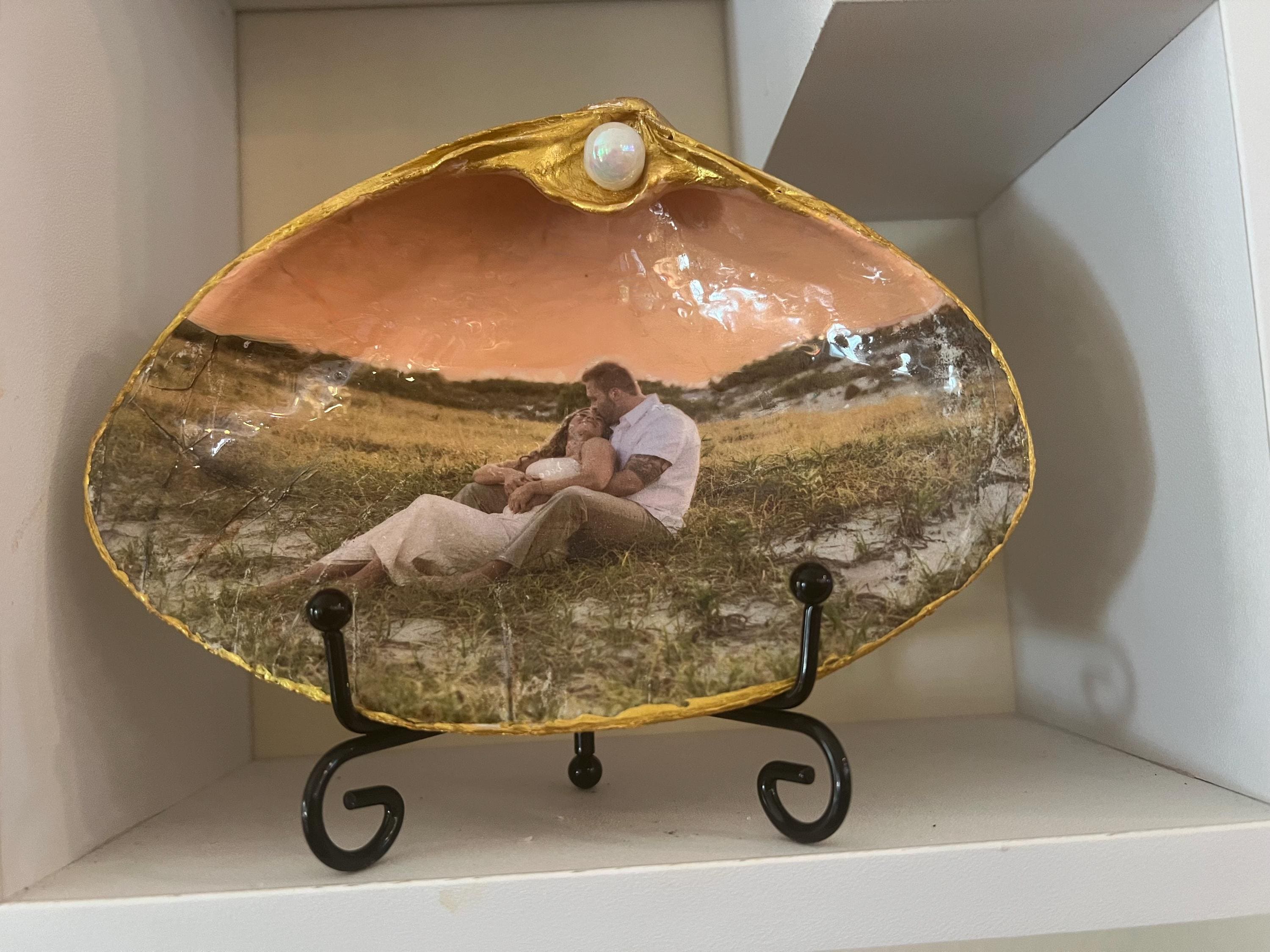 Do you have a photo that always makes you giggle? Don’t let it stay hidden on your phone. Turn it into a Shell Tale — a keepsake that preserves not just the moment, but the laughter that comes with it. Each photo is edited, laser printed and transferred into the shell (not decoupaged). Resin is used to seal the shell and a stand (or ribbon for an ornament) is included.