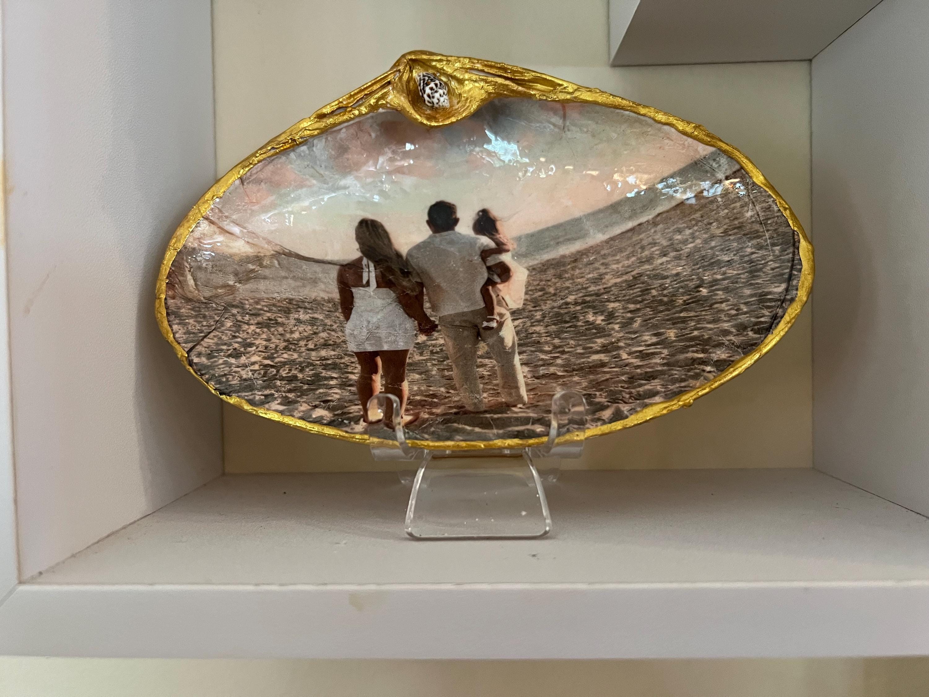 Each Shell Tale is handcrafted from Cape May shells — your image is transferred by hand (not decoupaged) and sealed in glossy resin for a luminous, lasting finish.