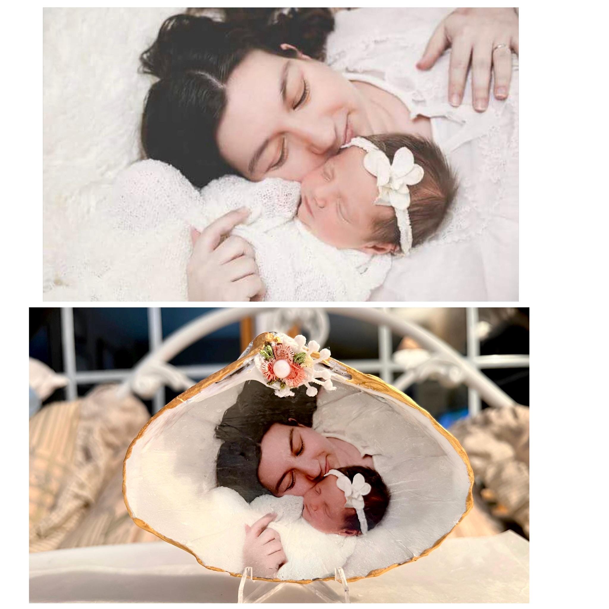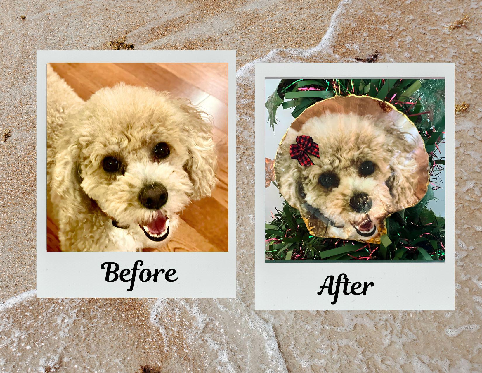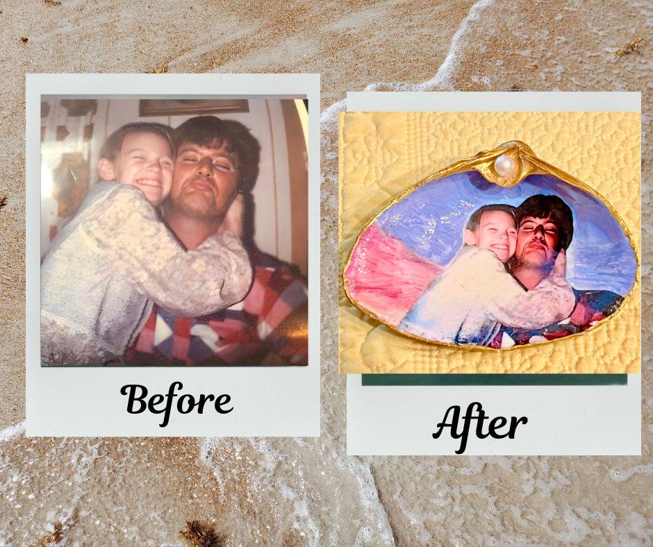 Every Shell Tale begins with a real Cape May seashell — hand-selected, carefully cleaned, and transformed into a personal piece of coastal art. Your photo isn’t decoupaged or simply placed on top; it is professionally transferred into the shell itself, becoming part of its natural surface. This gives each piece a soft, heirloom-quality finish that feels timeless and deeply personal.