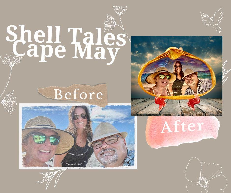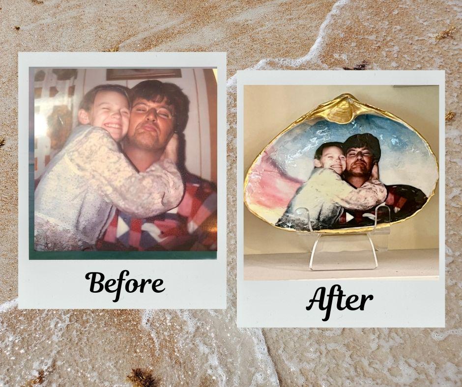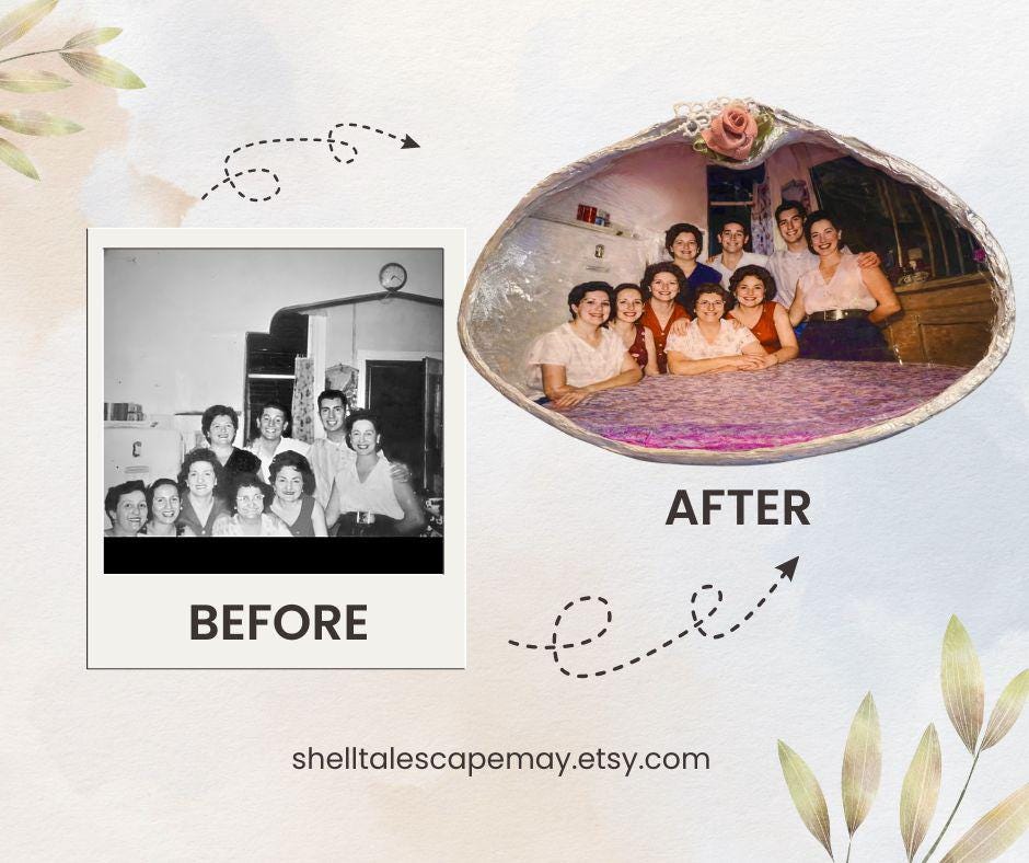 Turn a faded or damaged photograph into a beautifully restored keepsake on a natural seashell. At Shell Tales Cape May, I don’t just transfer photos — I carefully restore them, enhance clarity, and transform them into meaningful works of art that preserve your memories for generations.
