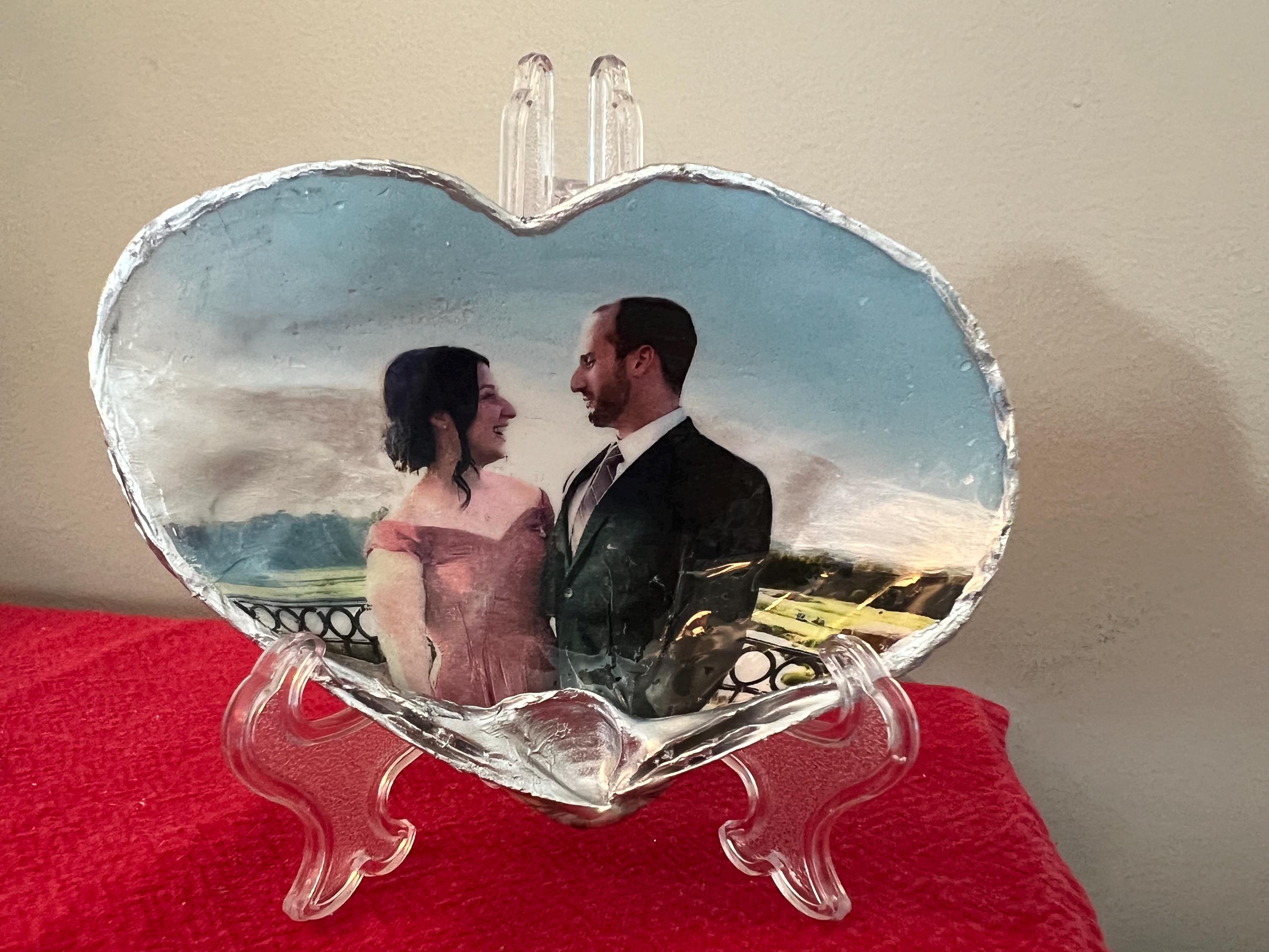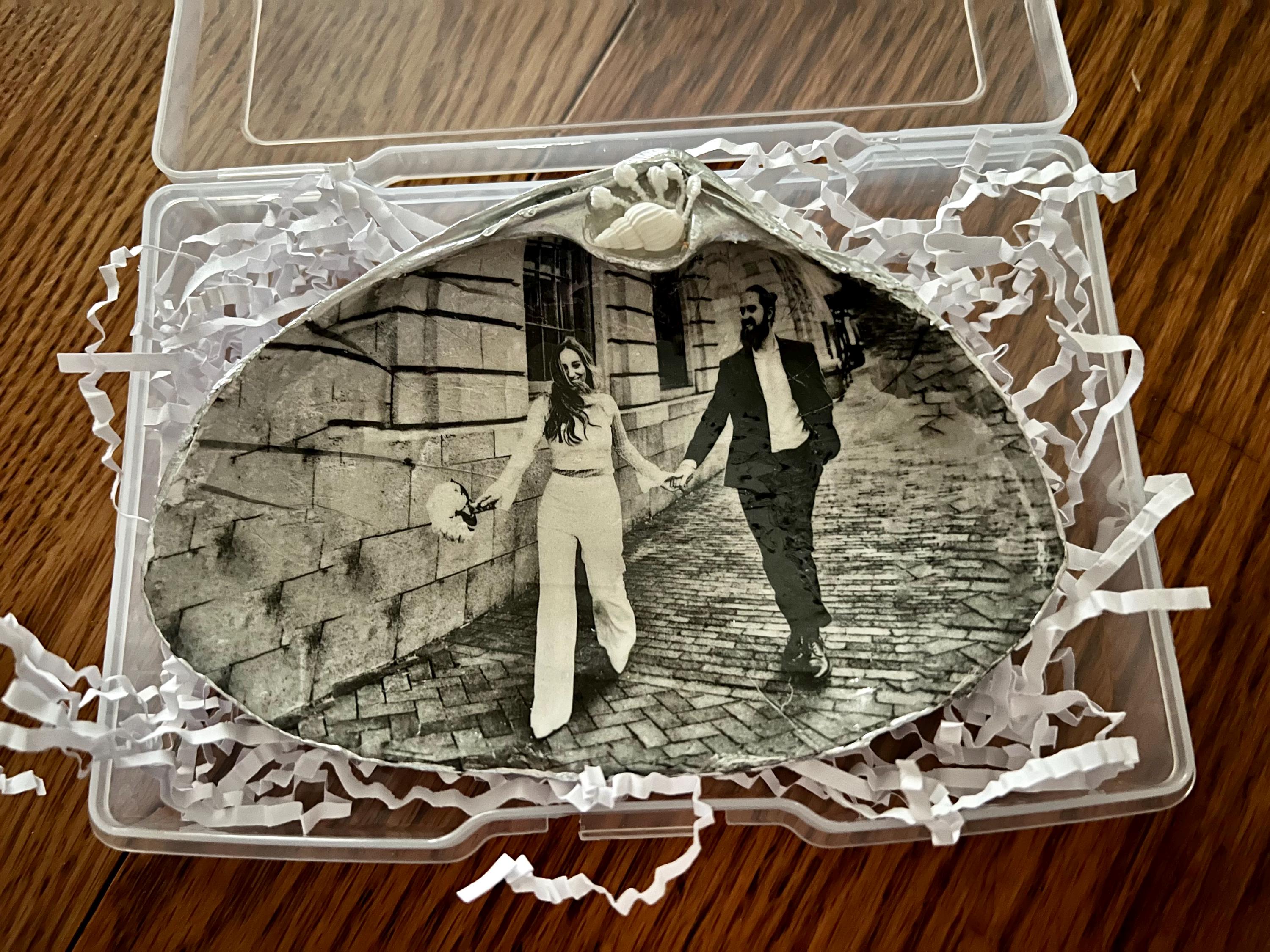 This one-of-a-kind Valentine’s Day shell features your favorite photo carefully transferred onto a real, natural seashell. Unlike decoupage or surface layering, my process embeds the image into the shell itself, creating a timeless, heirloom-quality keepsake that feels as special as the love it represents.
