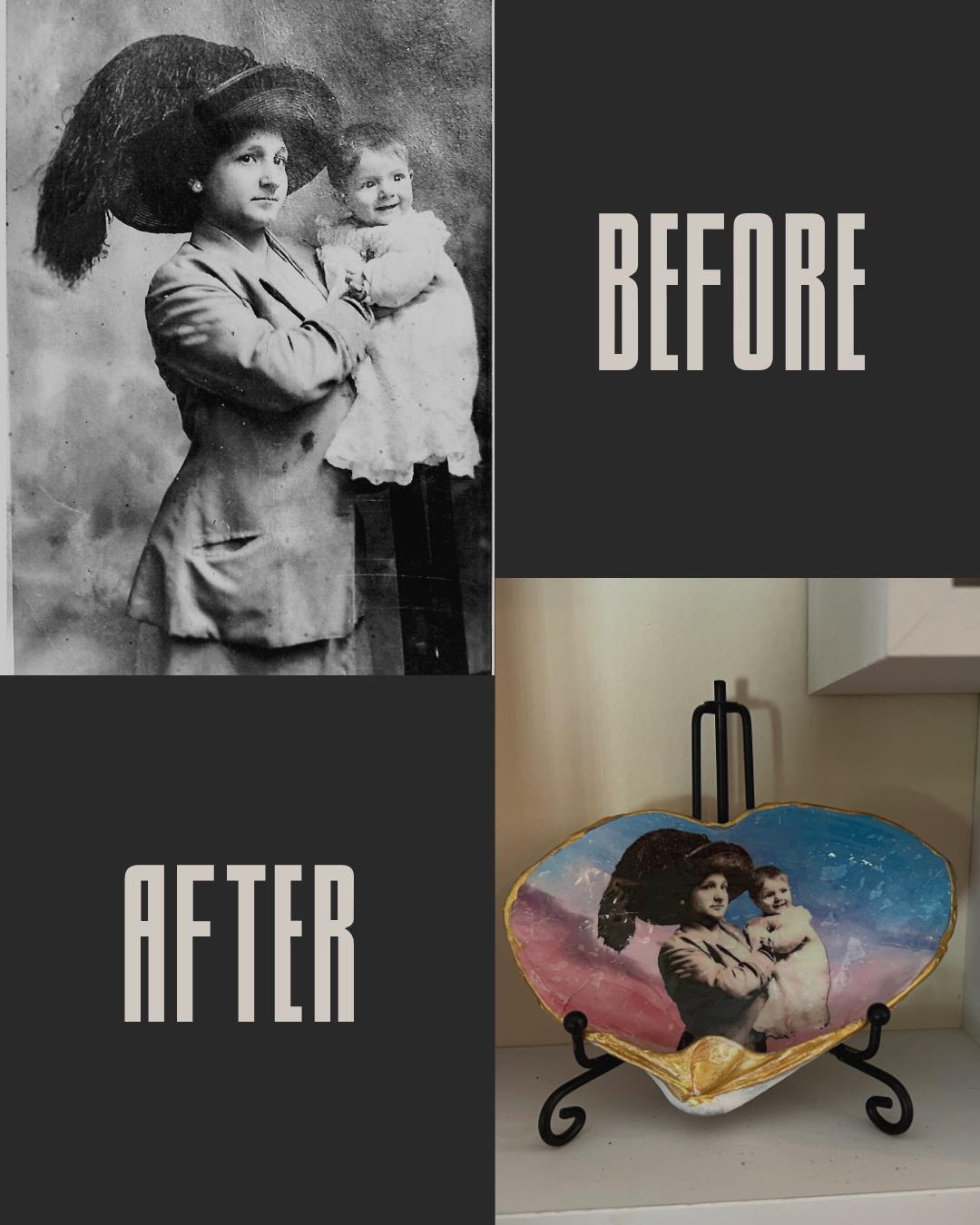 Have an old or faded photo? I carefully restore vintage images before transferring them into your shell—enhancing clarity, softening imperfections, and preserving the original character of the photograph.
